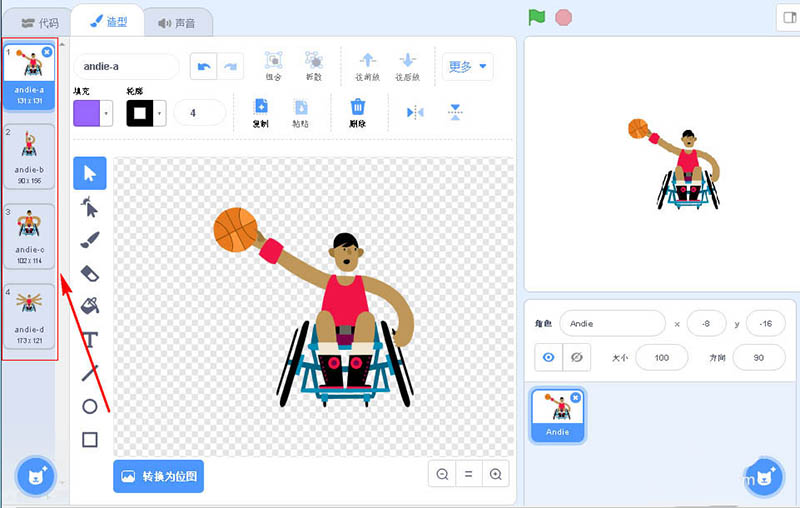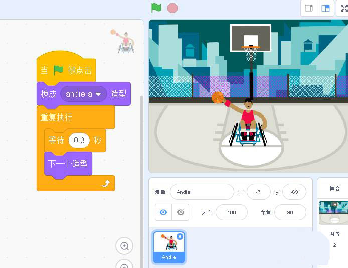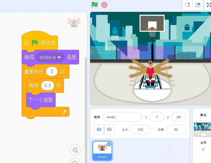 scratch里面有些角色需要添加動畫效果,動畫效果是通過給一個角色添加多個造型,然后通過多個造型之間的快速切換來實現(xiàn)。今天我們就來看看使用scratch制作人物打籃球動畫效果的教程。