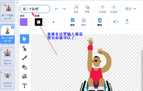 4、如果想修改造型的名稱直接在圖片指示的位置輸入新造型名稱就可以了。