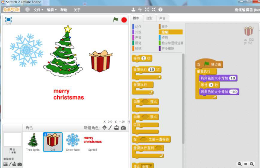 用scratch可制作圣誕快樂的動(dòng)畫,該怎么制作制作這個(gè)圣誕快樂的背景圖和動(dòng)畫效果呢?下面我們就來看看詳細(xì)的教程。