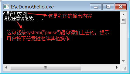對(duì)上面的代碼稍作修改,讓程序輸出“C語言中文網(wǎng)”后暫停下來: