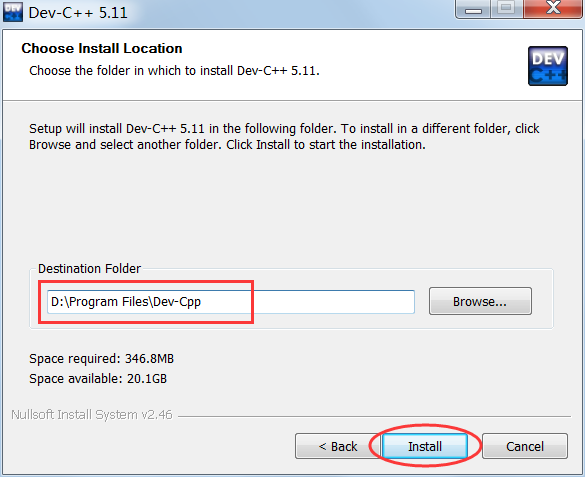 你可以將 Dev C++ 安裝在任意位置,但是路徑中最好不要包含中文。