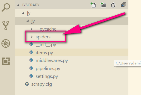 3、之后,scrapy項(xiàng)目便會(huì)創(chuàng)建好了,這個(gè)spiders文件夾就是用來存放爬蟲文件的哦。