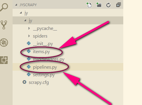 5、items用來編寫字段的,類似數(shù)據(jù)庫的字段喲。pipelines則是處理爬取好的文件的。