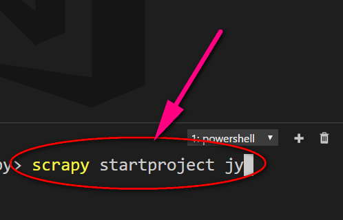 2、然后使用命令創(chuàng)建scrapy項(xiàng)目,當(dāng)然,你要先搭建好scrapy框架,這樣才可以使用scrapy命令哦,jy可變,代表scrapy項(xiàng)目名稱。