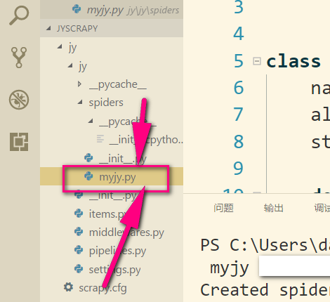 8、然后在這里就多了一個(gè)myjy(創(chuàng)建的),然后編寫爬取規(guī)則就可以了。