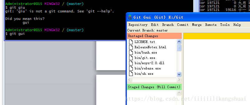 會彈出一個圖形化的界面,是git的gui圖形化界面。