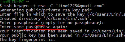 輸入 ssh-keygen -t rsa -C "your_email@youremail.com"