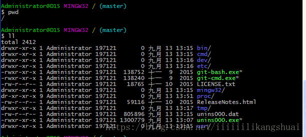 pwd是顯示當前目錄位置,ll是顯示當前文件夾下的文件