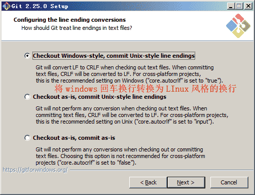 下面圖片默認第一個意思就是 將windows回車換行轉換為LInux風格的換行
