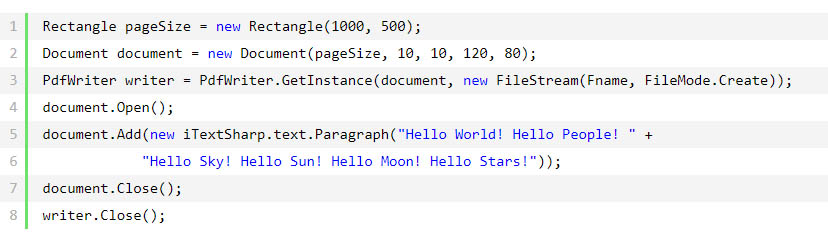 6、使用如下代碼進(jìn)行測試。PdfWriter對象是用于將Document對象寫入PDF文件
