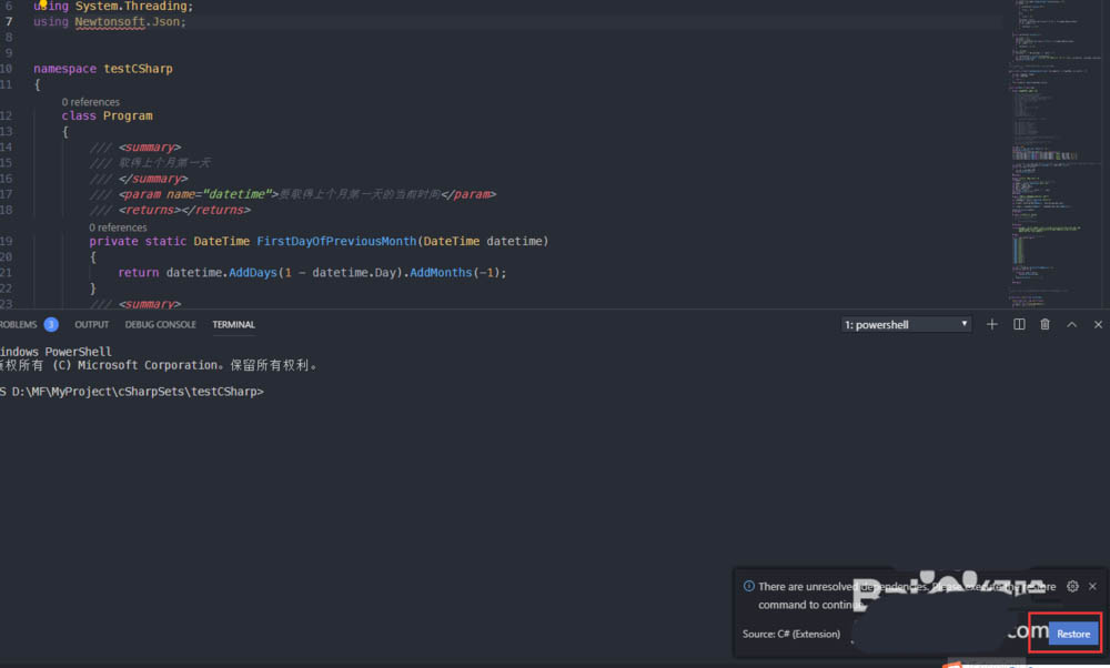 2、打開控制臺,輸入命令: dotnet add package Newtonsoft.Json
