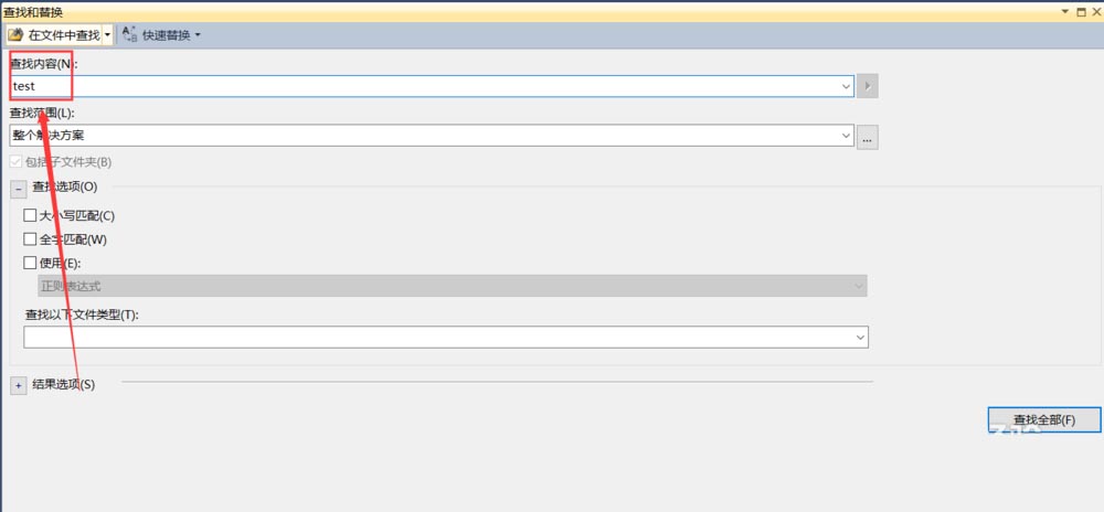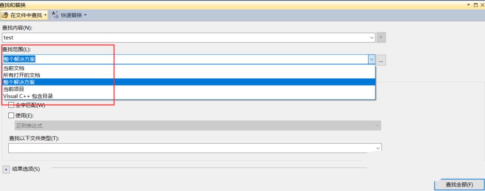 4、選擇查找范圍,是當前文檔,還是整個項目
