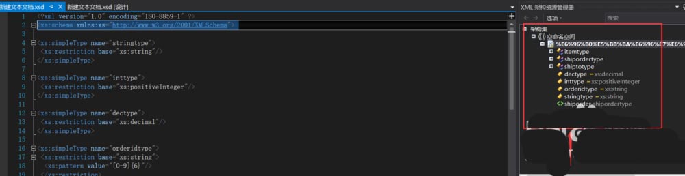 1、為了演示方便,新建一個xsd文件,內容為xml格式的數據