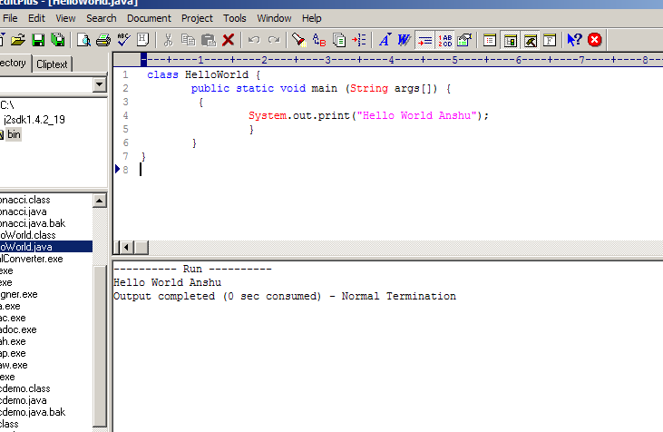 9、點擊 Tool->Run , 運行結(jié)果就出現(xiàn)在控制臺上