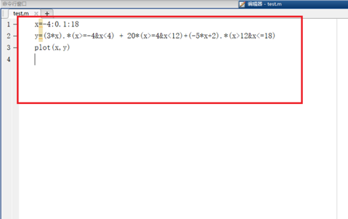 第三步輸入x=-4:0.1:18,這個(gè)x的范圍也是分段函數(shù)x的條件范圍,如下圖所示: