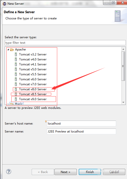 7、按照步驟安裝完后,然后重啟eclipse,會發(fā)現(xiàn)Tomcat8已經(jīng)有了,就可以配置使用tomcat8了。