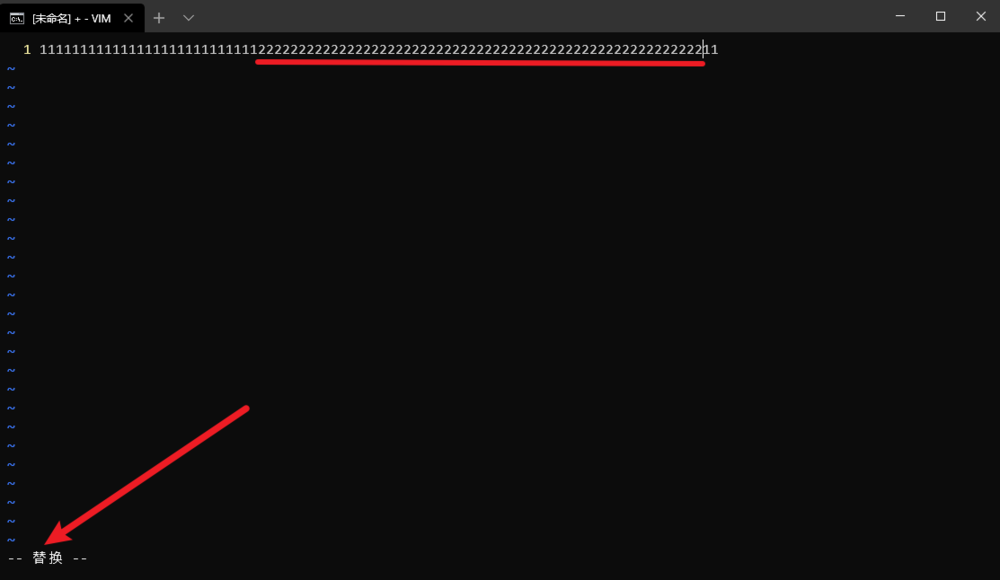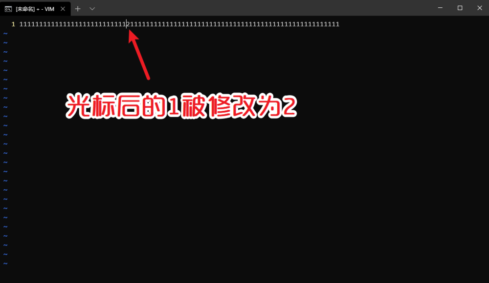 3、按小寫r鍵,書入2,將光標后的字符替換為2,這里只能替換一次。
