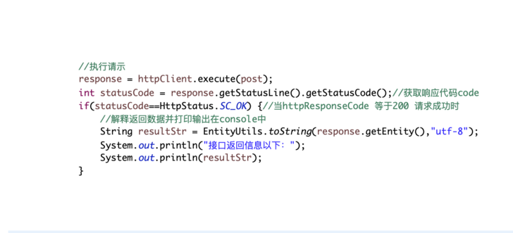 8、執行http請求httpClient.execute(post),并獲取請求響應信息并處理數據。