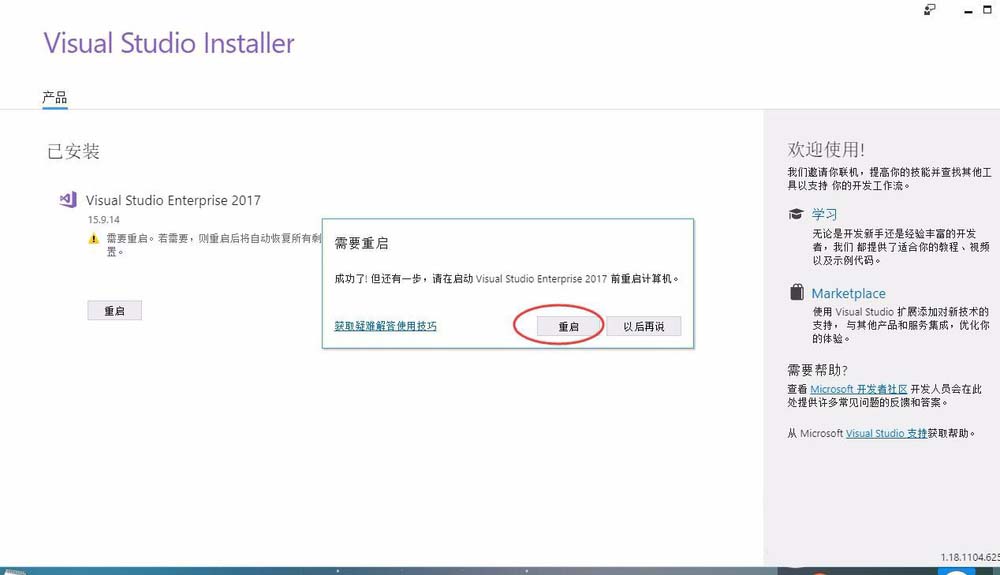 7、直至安裝完成,需要重啟電腦的時,點擊“重啟”即可,如下圖所示: