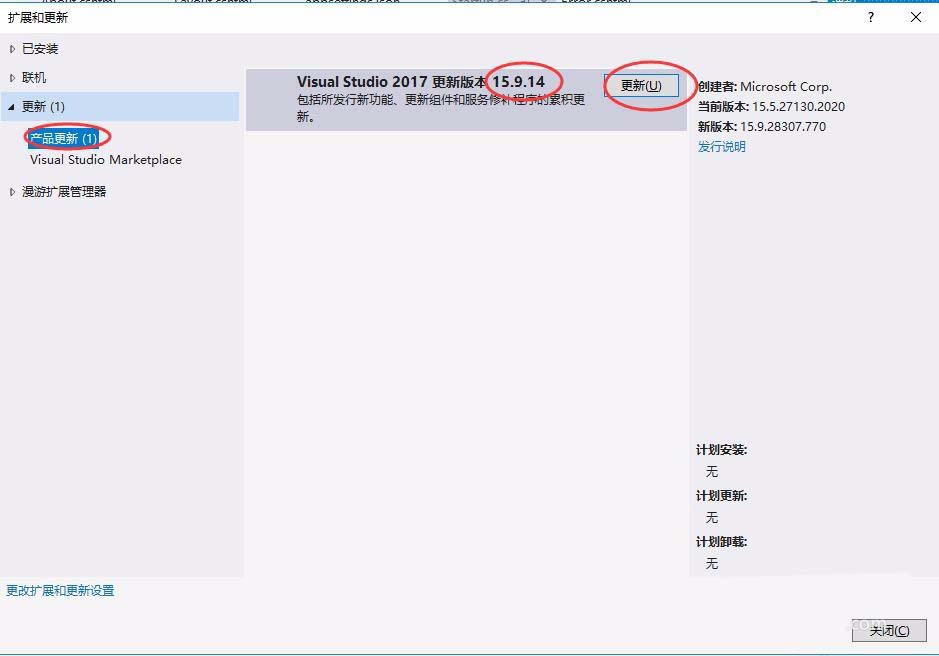 5、彈出一個更新Visual Studio安裝程序,點擊“更新”,如下圖所示: