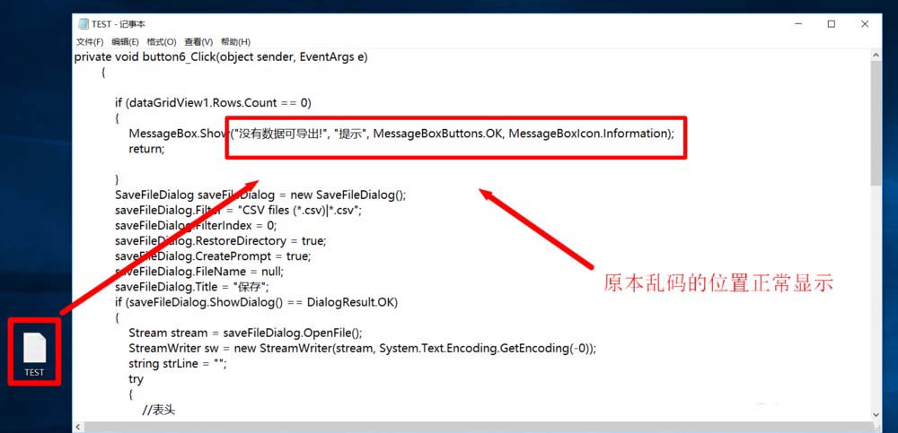 3、我們再次復制VS中的源代碼粘貼到文本文檔中,發現亂碼的問題解決了 。