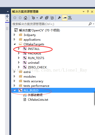 進入剛才設置的目標路徑,用VS2013打開ALL_BUILD文件
