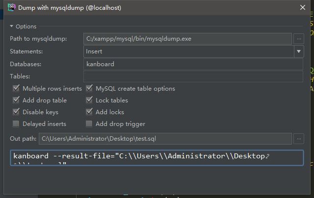 Tables需要導(dǎo)出的表(不可選擇,默認(rèn)當(dāng)前右鍵選中的)