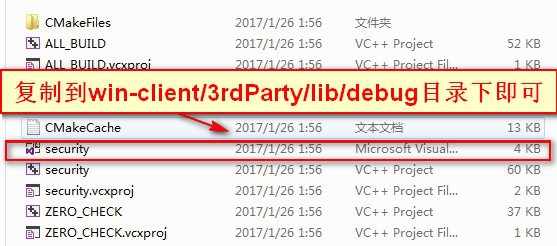 6、解決方案生成庫也復(fù)制到win-client/3rdParty/lib/debug目錄下即可