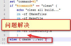 5、進入/server/src/libsecurity/win/目錄下命令行運行build.bat批處理文件修改批處理文件else跟隨到右括號)后面即可,切記要安裝好cmake。