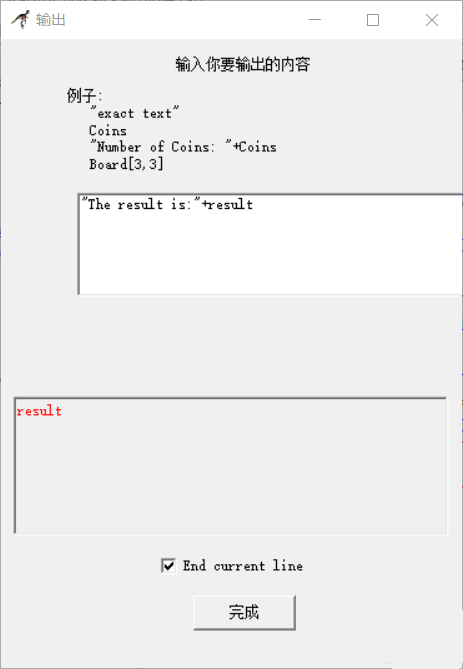 6、在輸出框輸入 "The result is:"+result 也可直接輸入 result 你可以試一試這兩個運行結果有何不同