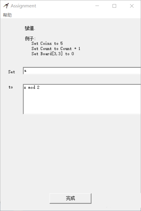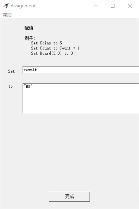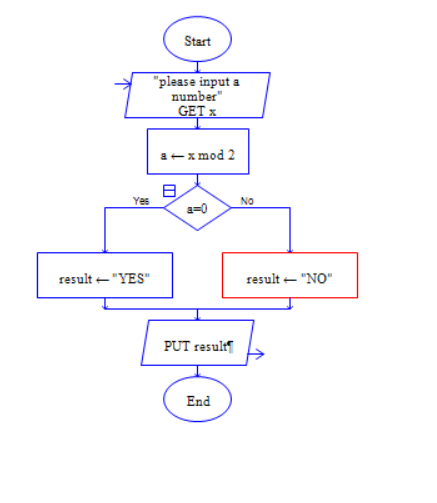 5、雙擊賦值框1 在上方輸入 a 下方輸入x mod 2,雙擊賦值框2 在上方輸入 result 下方輸入 "YES",雙擊賦值框3 在上方輸入 result 下方輸入 "NO"