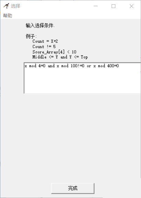 4、雙擊判斷框 輸入 x mod 4=0 and x mod 100!=0 or x mod 400=0