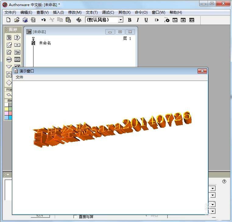 12、在空白處雙擊鼠標(biāo)左鍵,就可以回到Authorware的演示窗口,看到我們剛才輸入的藝術(shù)字。