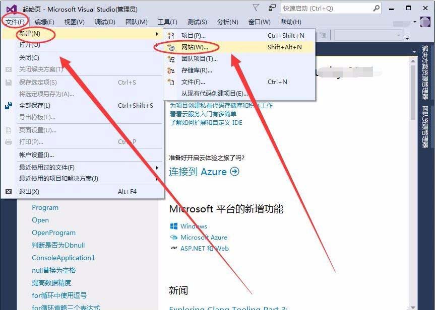 1、打開Visual Studio后,單擊文件菜單,選擇新建---->網站選項。