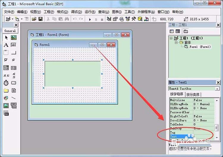 5、屬性窗口中,將Text后的默認(rèn)文本刪除。