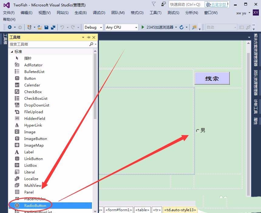 9、RadioButton是單選框控件,用它可以直接制作單選按鈕。