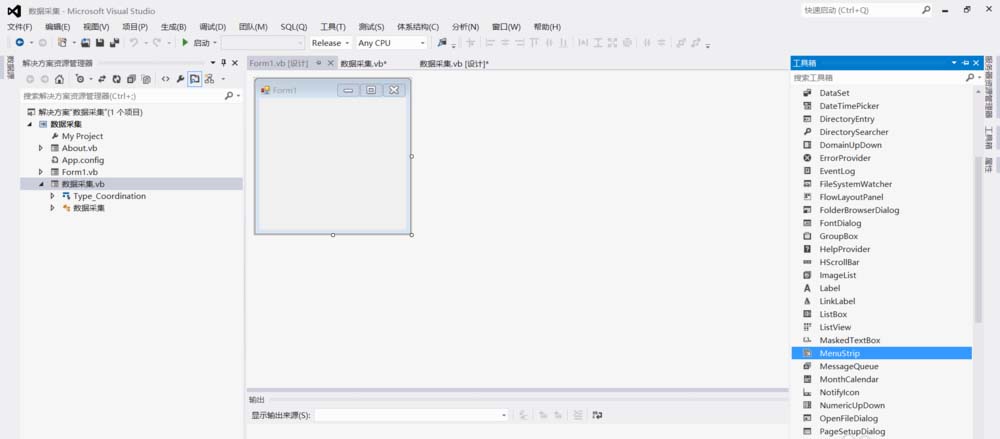 2、給新建的窗體拉入一個(gè)菜單:MenuStrip