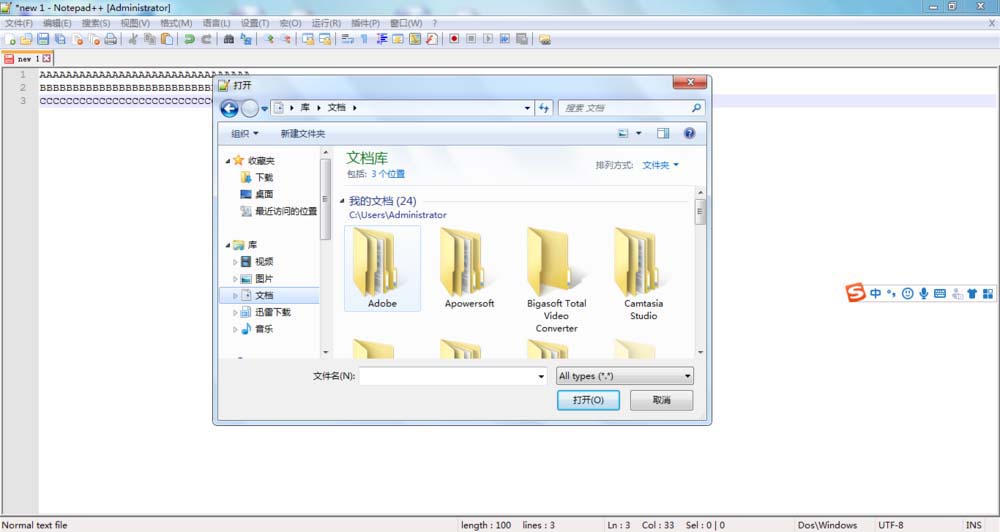 1、首先,用Notepad++打開需要操作的文本。依次點擊菜單欄中的文件->打開->選擇文件名,確定。如圖所示。