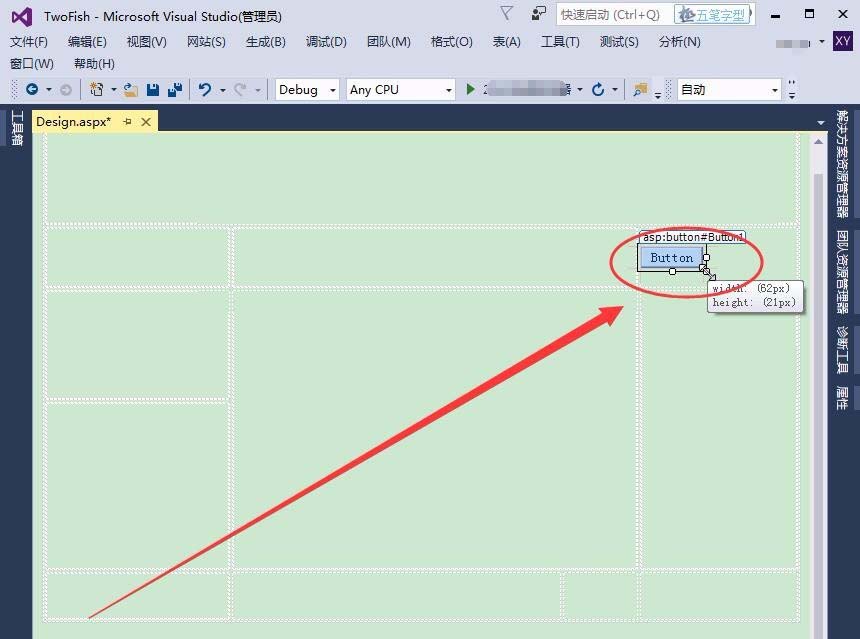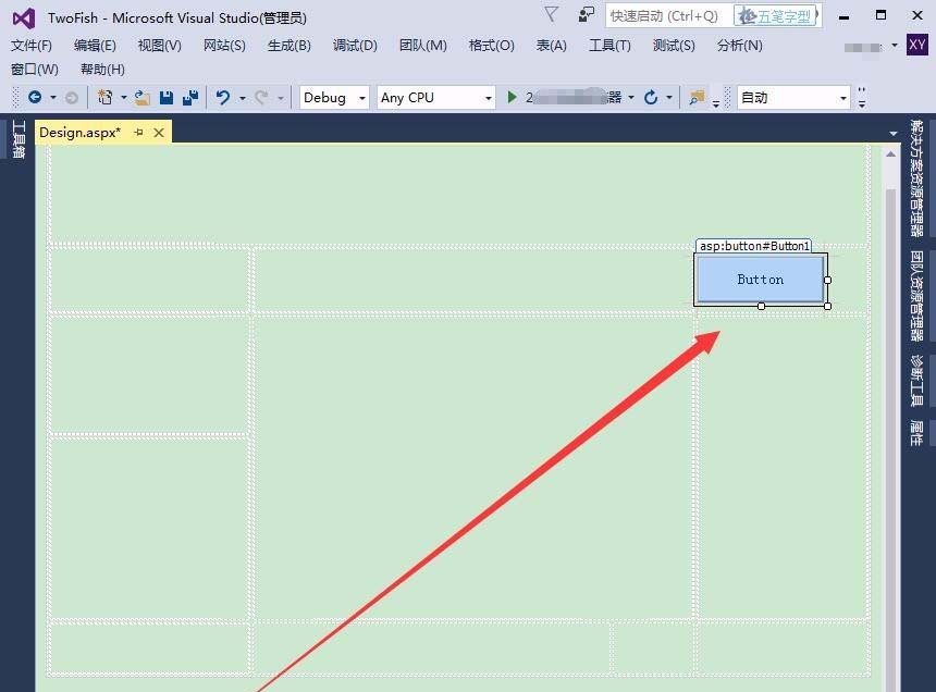 3、工具箱中,選擇Button控件,在網(wǎng)頁(yè)中插入該控件。