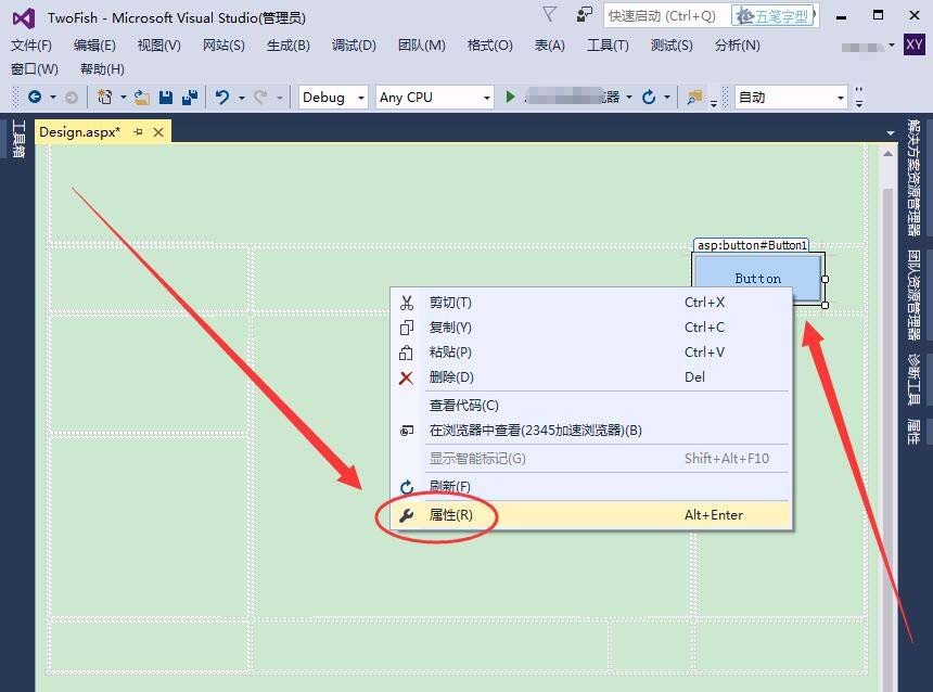 5、控件上右擊,在下拉菜單中選擇屬性選項(xiàng)。