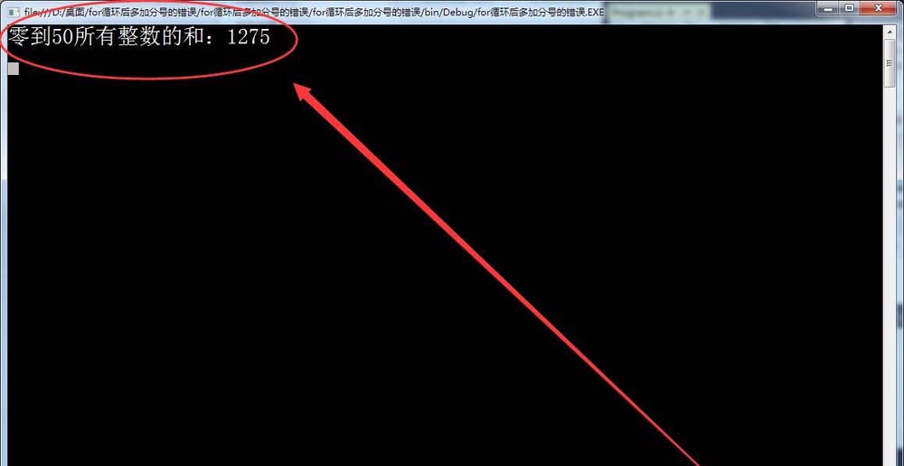 9、運行程序,在窗口中就輸出0到50所有整數和的正確值,即1275。
