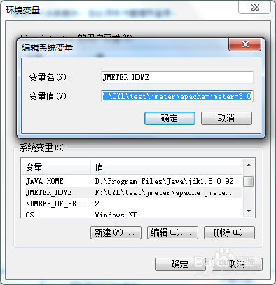 【變量值】F:/CYL/test/jmeter/apache-jmeter-3.0(根據(jù)實(shí)際的jmeter解壓路徑填寫)