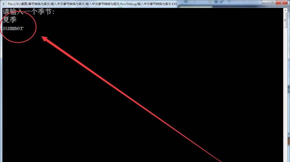 10、運行程序窗口中,輸入夏季,則輸出summer。