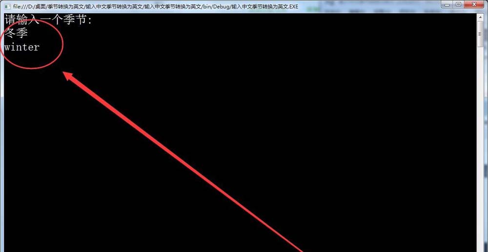 11、輸出窗口中,輸入秋季則輸出autumn,輸入冬季則輸出winter。