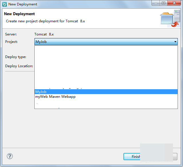3、點擊Add Deployment...,進入到New Deployment頁面,這里有個Project的下拉選擇框,點擊彈出下拉列表,選擇要部署的項目,如圖