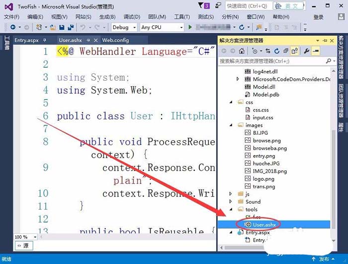 6、可以看到,在tools文件夾中,多了一個User.ashx文件,用戶文件就添加好了。