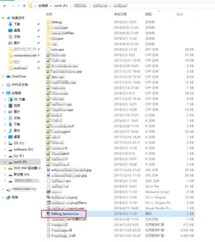 7、再回到工程界面,看到下方外部資源項中多了兩項,.ico文件和.rc文件,再在與工程名同名的cpp文件中添加以下兩行代碼。