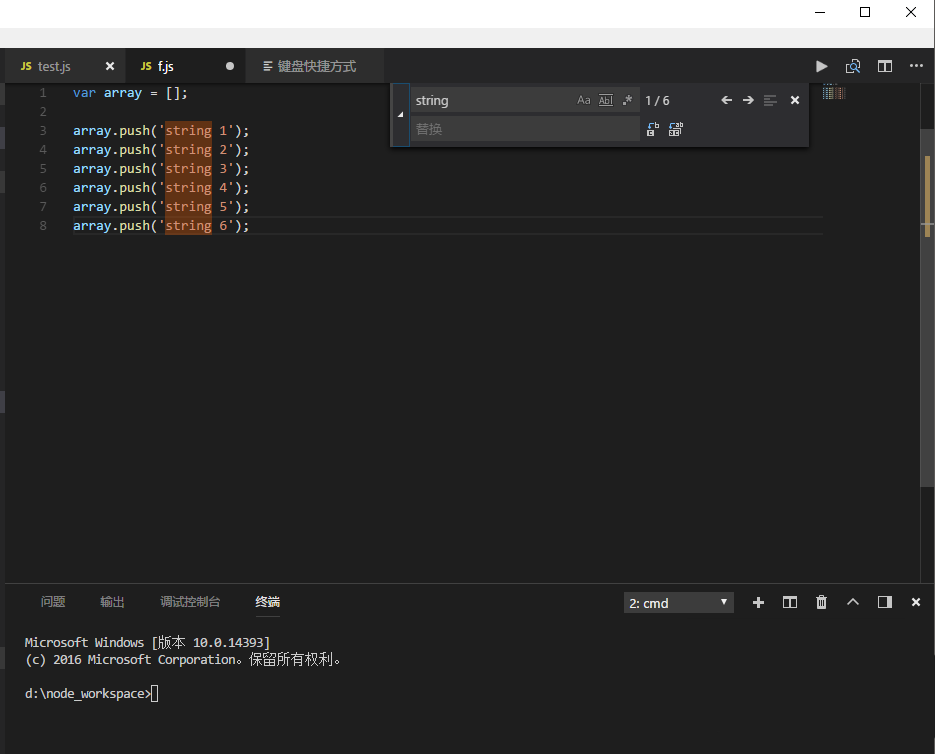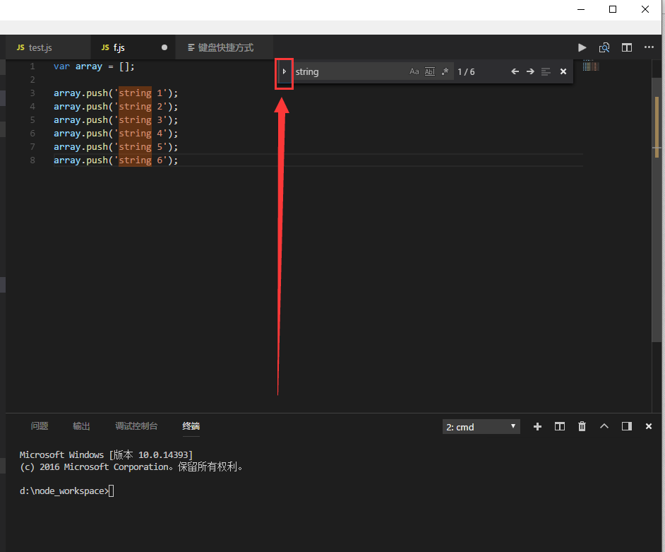1、按ctrl+f,可以搜索當前頁面,然后按搜索框左邊的小三角符號,可以切換成替換模式。有時候使用字符串替換,比多光標方便,但是注意別不小心替換掉不想替換的內容。