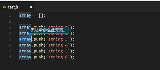 2、但是要注意,在js文件中,如果這個變量沒有用var或者const或者let聲明,會無法重命名。