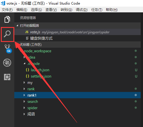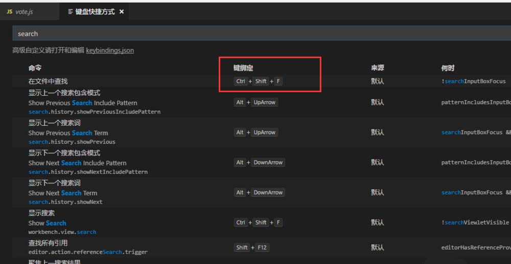 6、輸入search,按回車,第一個就是ctrl+shift+f,全局搜索